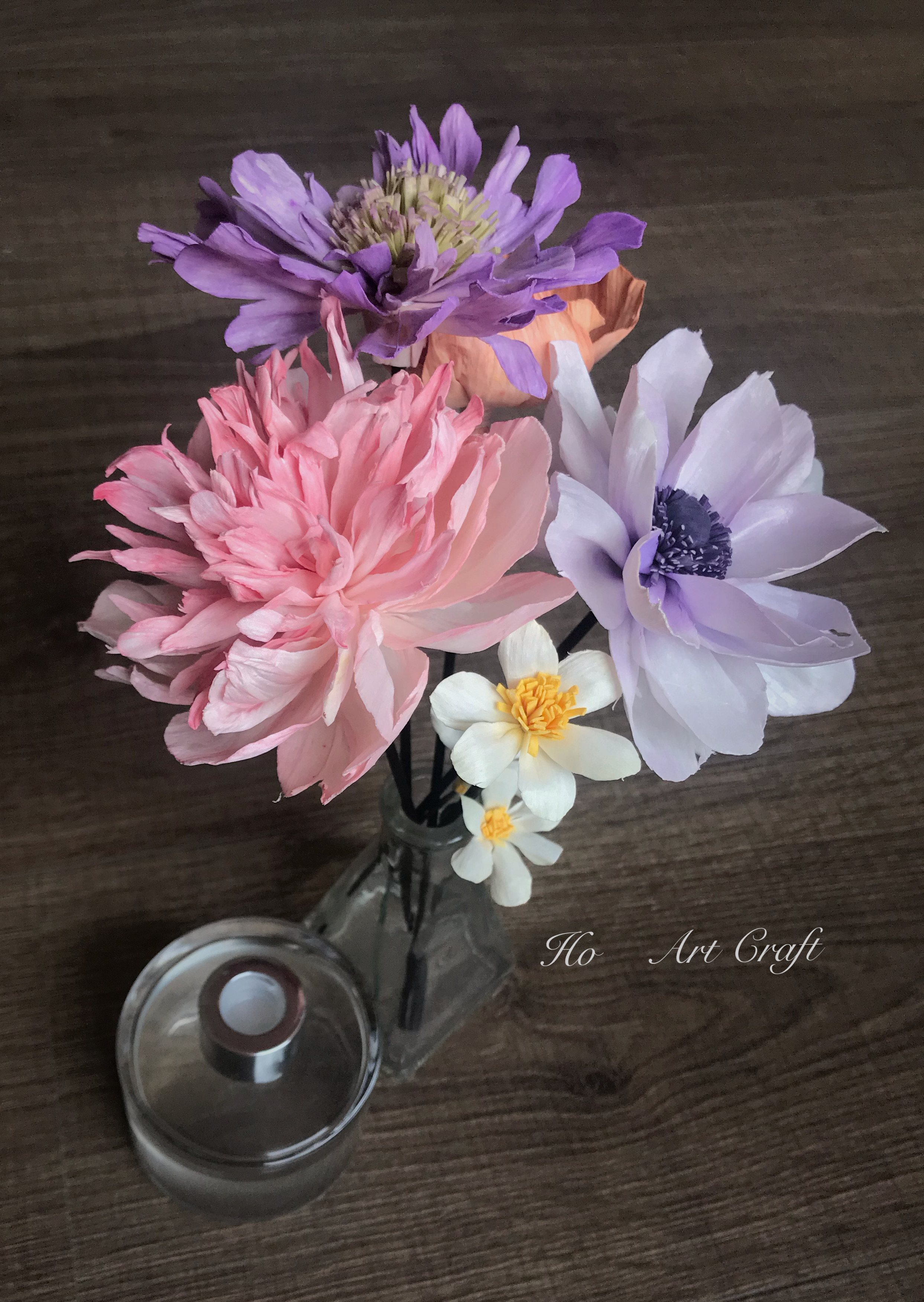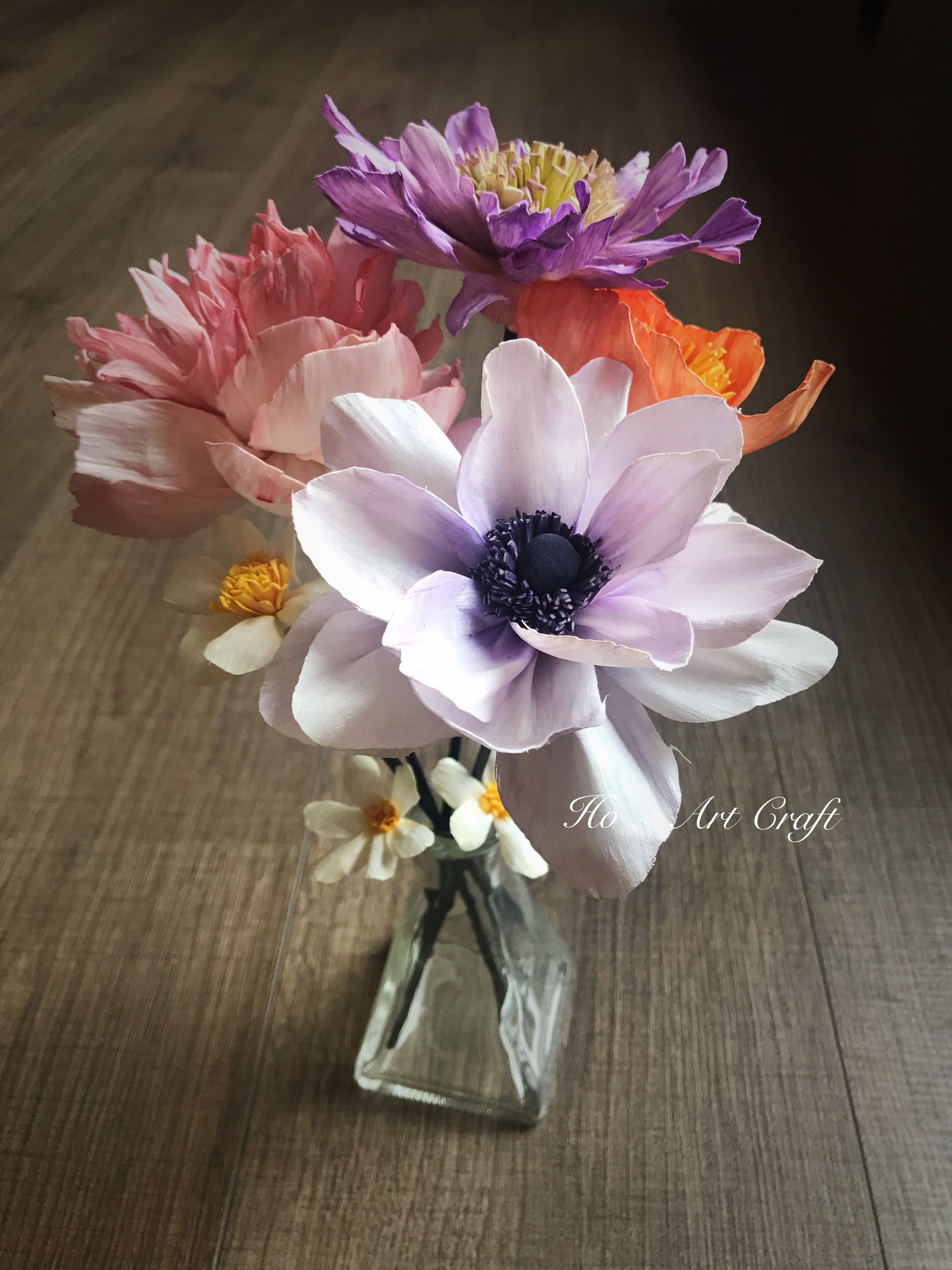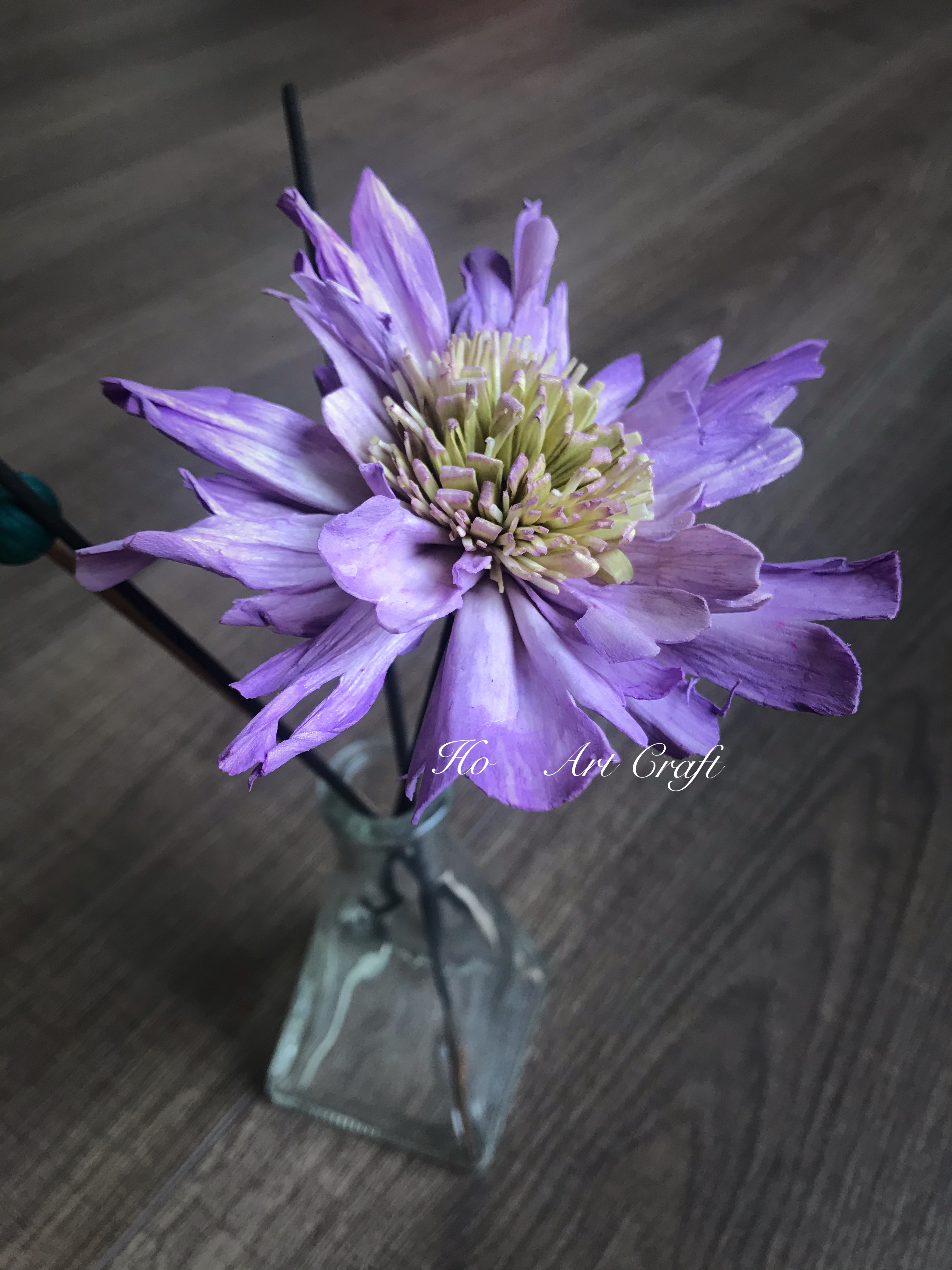 索拉(sola)是一種東南亞的草本植物,經採收後 工匠用刀具將索拉的莖部刨成片狀樹紙(索拉紙)。 經由手工加濕、裁剪、染色、綑綁⋯因應每一款花型的姿態 表情,賦予它既有的花語!